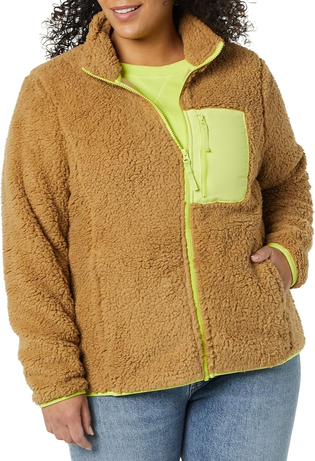Amazon Essentials Women’s Sherpa Long-Sleeve Mock Neck Full-Zip Jacket with Wove…