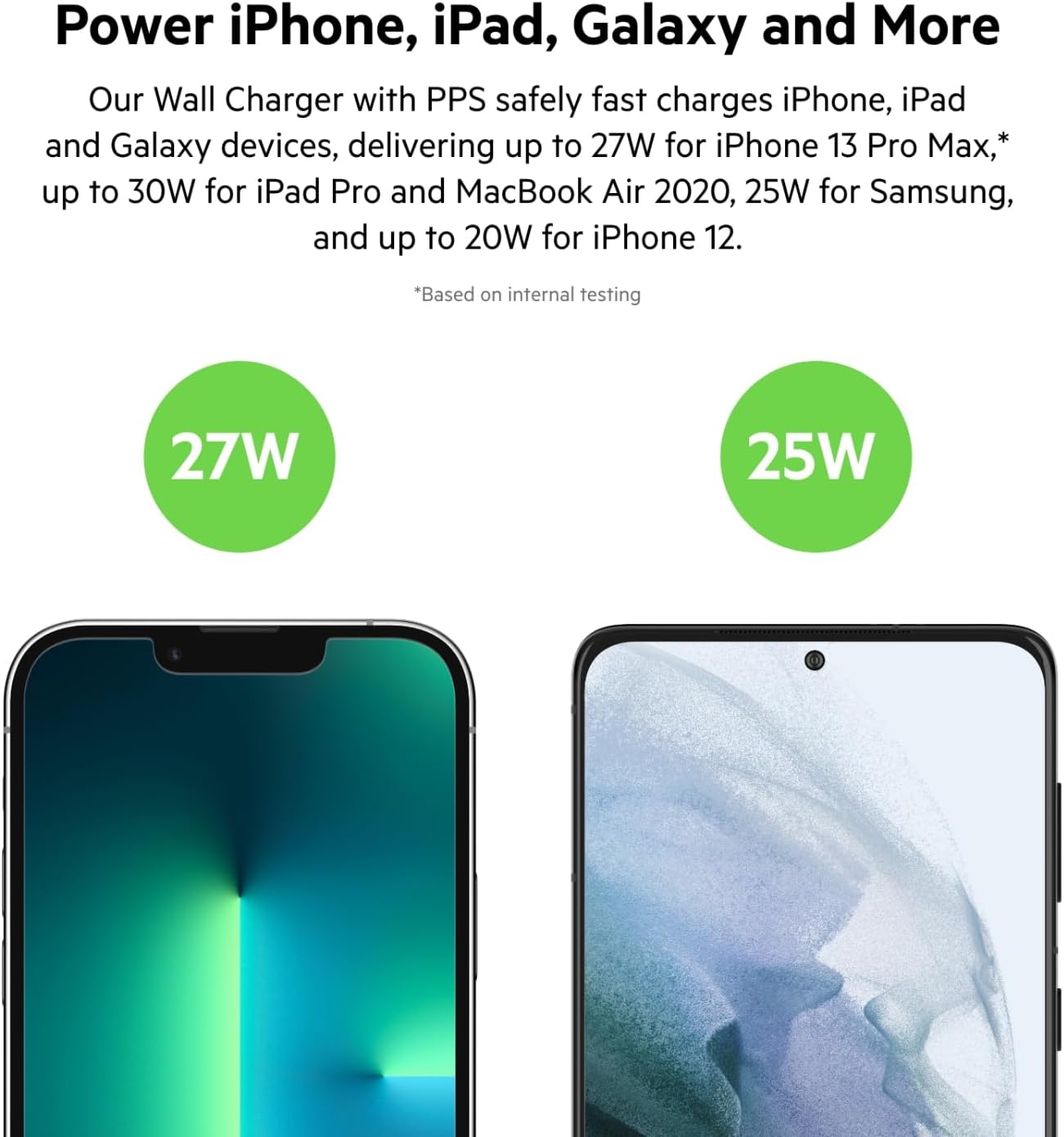 Fast, Safe, and Compact Fast charge an iPhone or Samsung smartphone from 0-50% in 26 minutes* using our powerful and safe Wall Charger with PPS. It’s packed with the latest USB-C Power Delivery 3.0 and PPS technologies, working together to safely deliver the ideal amount of fast power to the device it’s connected to, up to 30W for an iPhone 17 and 25W for a Galaxy S25. This universal wall charger is designed to be travel-ready with its compact size and foldable prongs (US only), making it perfect for use at home, the office, and when on the move.