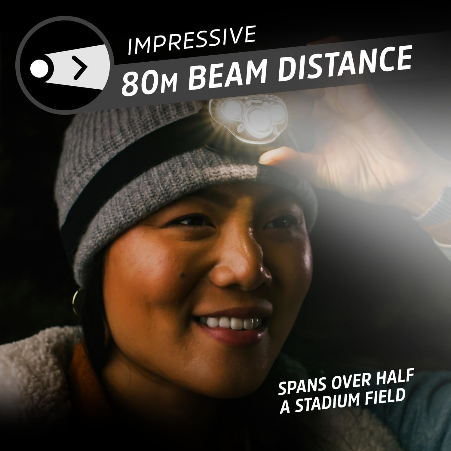 [Bright LED Light]: 260 lumen headlamp LED light has up to an 80-meter beam distance and is 4x brighter than the standard LED technology
